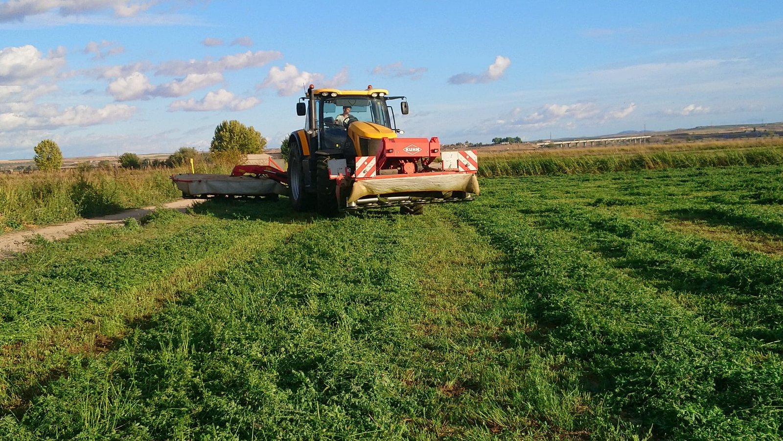Maximiza tu rendimiento forrajero con nuestro innovador servicio de siega utilizando un tractor equipado con tres segadoras. Este sistema avanzado permite cubrir más área en menos tiempo, asegurando una siega uniforme y eficiente. Ideal para grandes extensiones, nuestra tecnología reduce el tiempo de trabajo y aumenta la calidad del forraje cortado. Los tallos se depositan de manera homogénea, facilitando el secado. Opta por nuestra solución para una siega rápida, limpia y con el mínimo impacto en tus tierras.